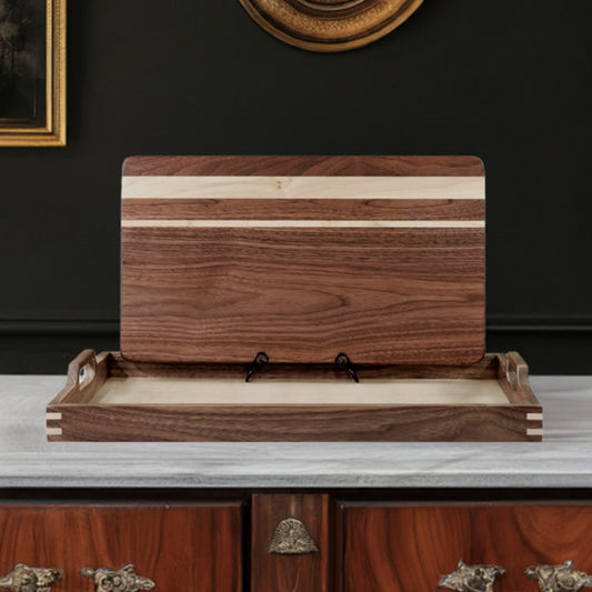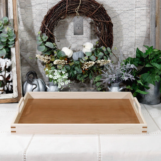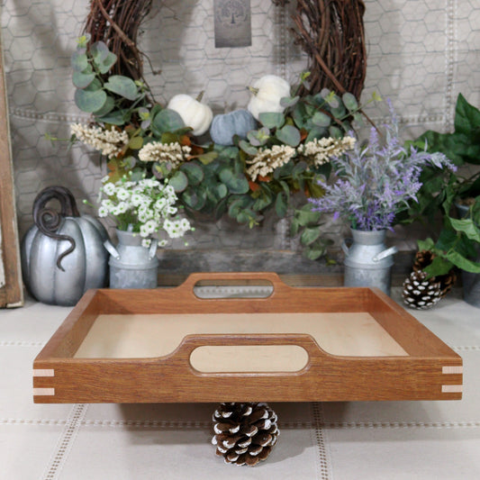 Maple & Cherry Wooden Serving Ottoman Tray with Handles