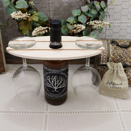 Maple Wood Wine Bottle & Glass Carrier - It holds 2 Glasses.