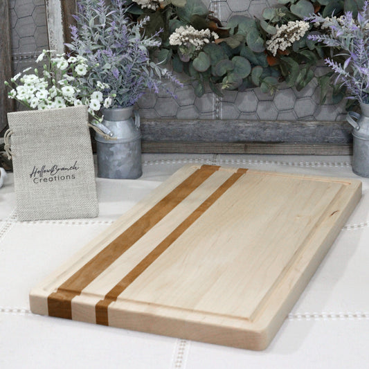 Maple Wood Cutting Board with Offset Cherry Inlay