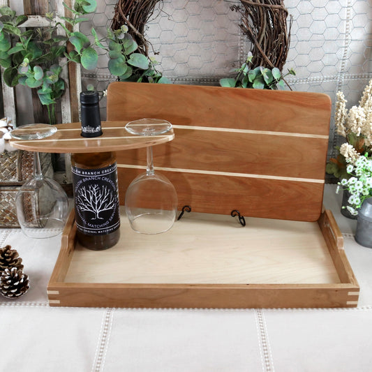 3-Piece Cherry Wood Set: Tray, Cutting Board, & Wine Carrier