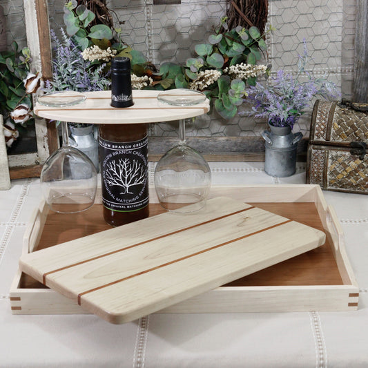 3-PC Maple Wood Set: Serving Tray, Cutting Board, & Wine Carrier