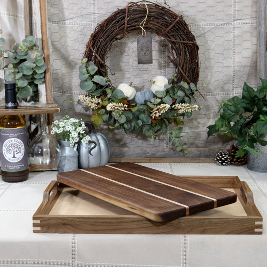 3-PC Walnut Wood Set: Tray, Cutting Board, & Wine Carrier